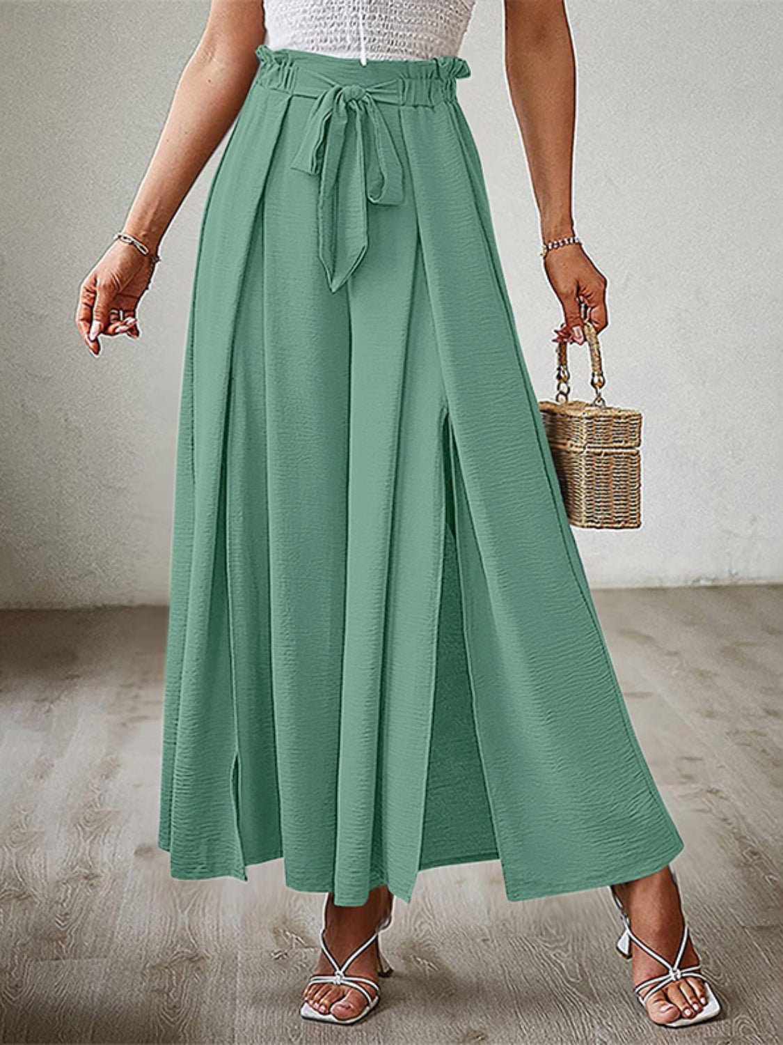 Tied Slit Wide Leg Pants