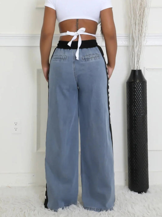 RISEN Full Size Mid Rise Wide Side Pintuck Jeans with Front Drawstring Plus Size