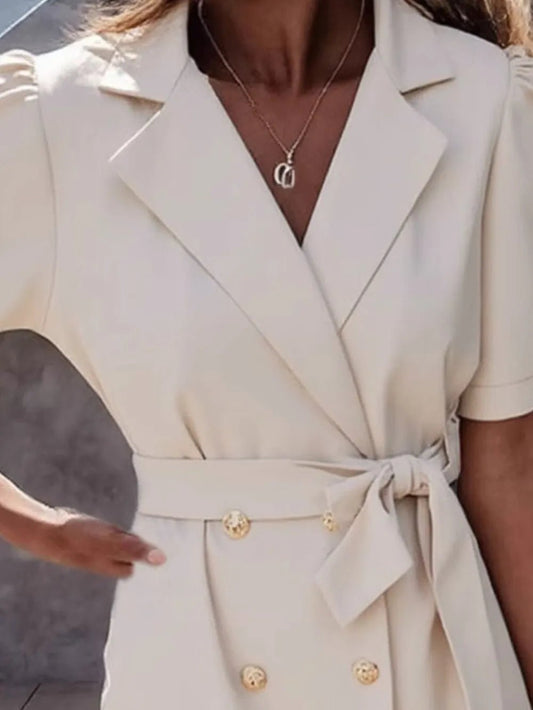 Regular price £24.00 GBPRegular priceUnit price / perSale price £24.00 GBPLapel Collar Short Sleeve Tie Waist Mini Dress