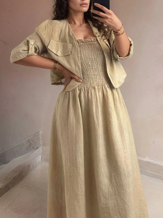 Regular price £38.00 GBPRegular priceUnit price / perSale price £38.00 GBPFull Size Smocked Cami Dress and Jacket Set Plus Size