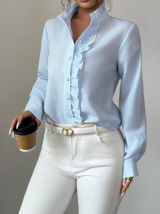 Regular price £29.00 GBPRegular priceUnit price / perSale price £29.00 GBPRuffle Front Striped Button-Up Shirt