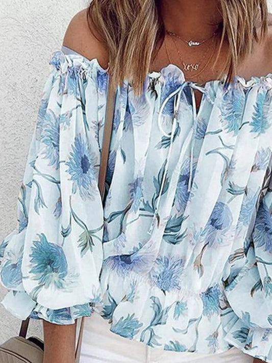 Full Size Floral Off-Shoulder Bell Sleeve Blouse Plus Size