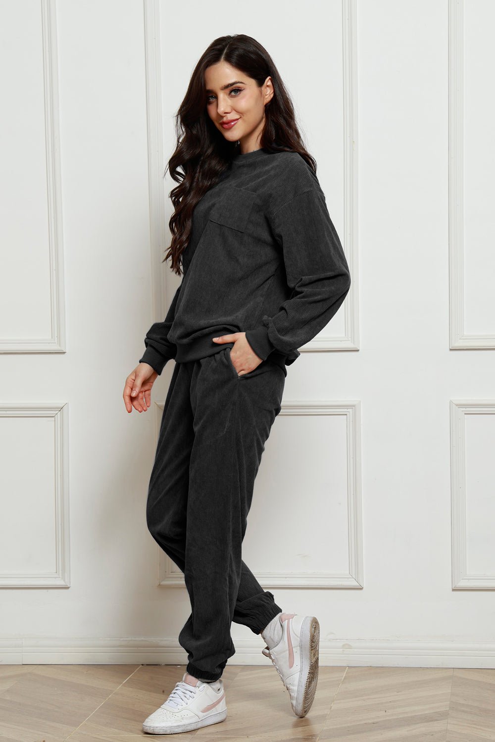 Corduroy Round Neck Sweatshirt and Sweatpants Set