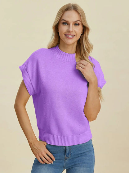 Double Take Full Size Mock Neck Short Sleeve Sweater