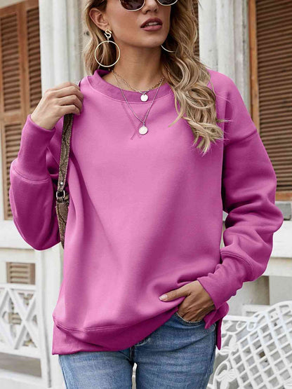Curated for comfort, style, and confidence—meet the Dropped Shoulder Slit Sweatshirt that flatters every curve.
