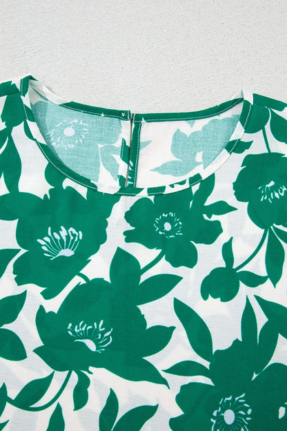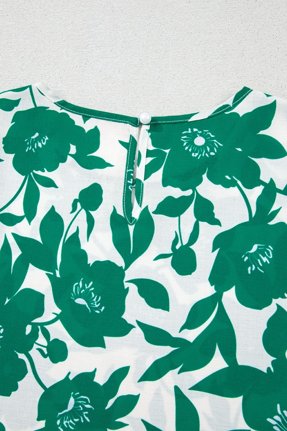 Floral Print Ruffled Short Sleeve Round Neck Loose Blouse