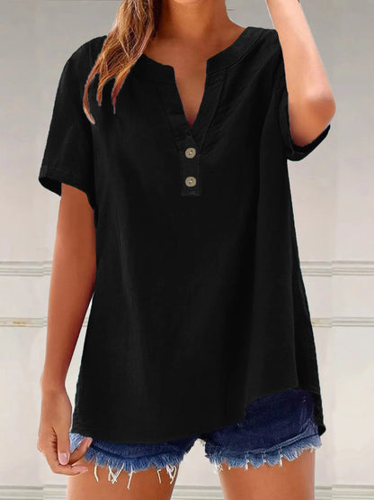 Curated for comfort, style, and confidence—meet the Full Size Notched Short Sleeve Blouse Plus Size that flatters every curve.