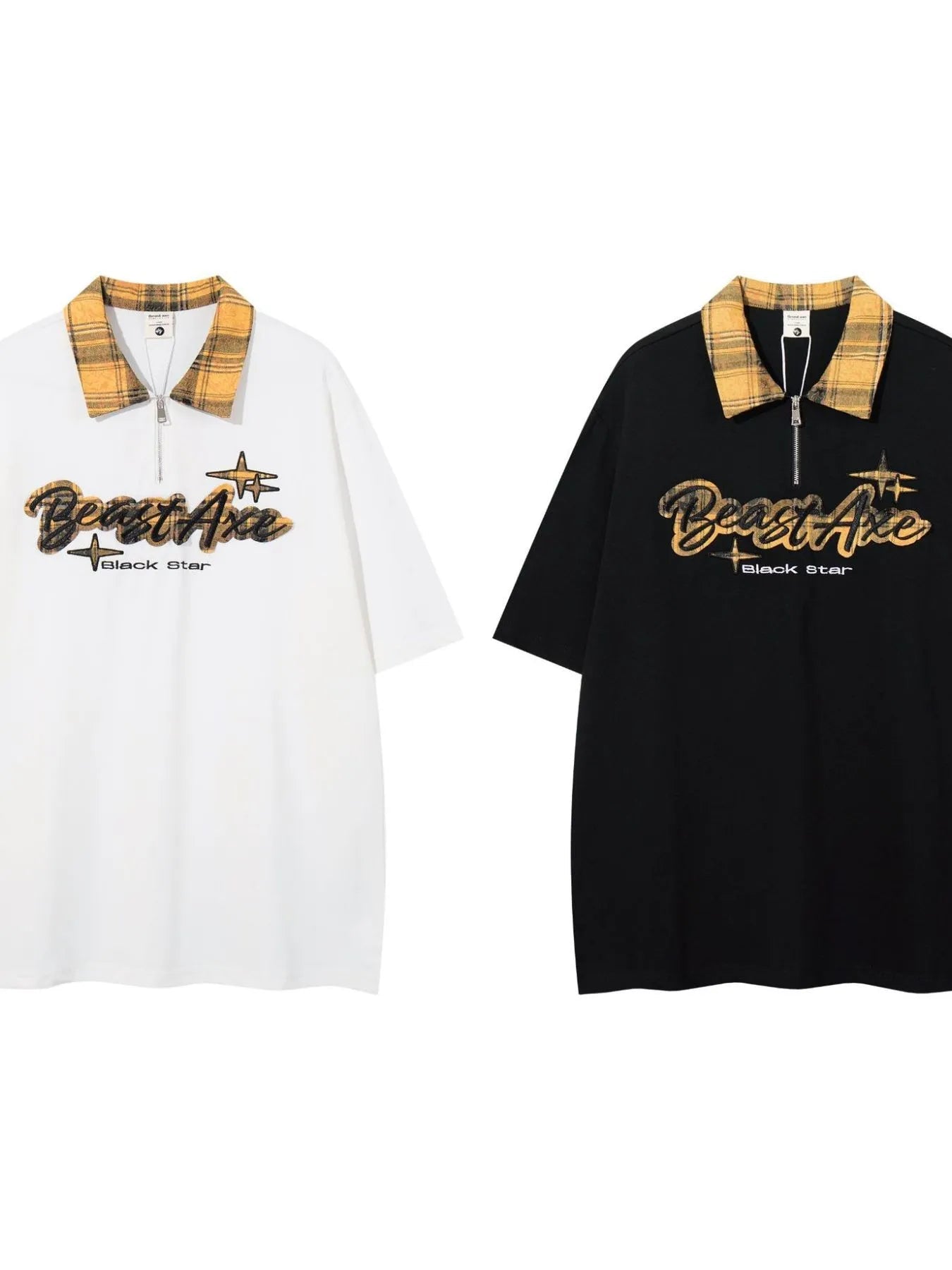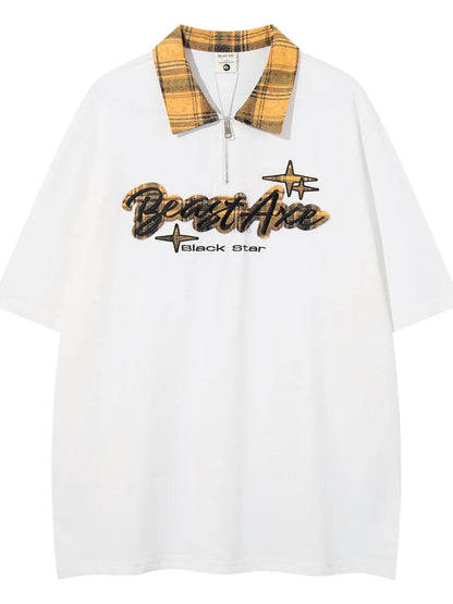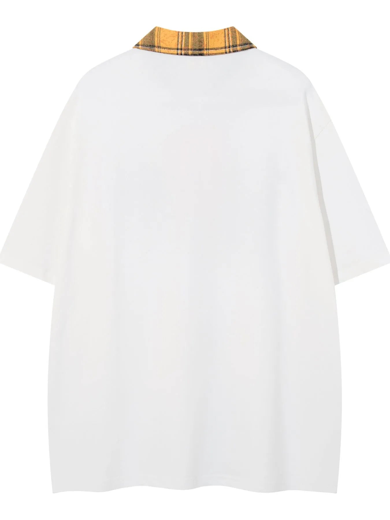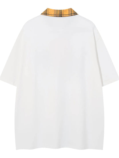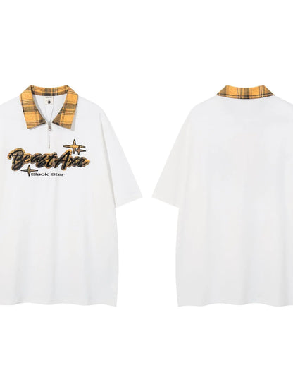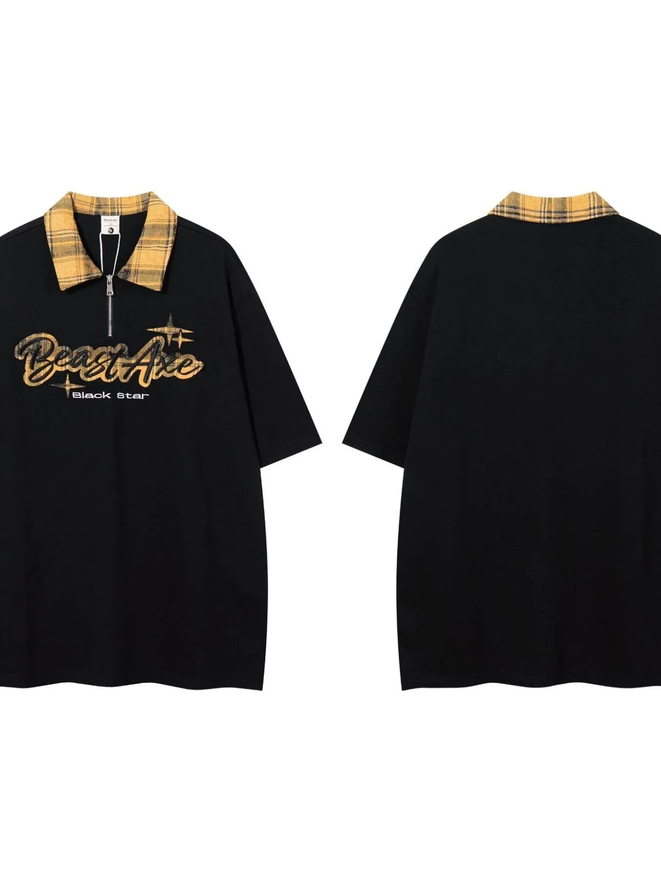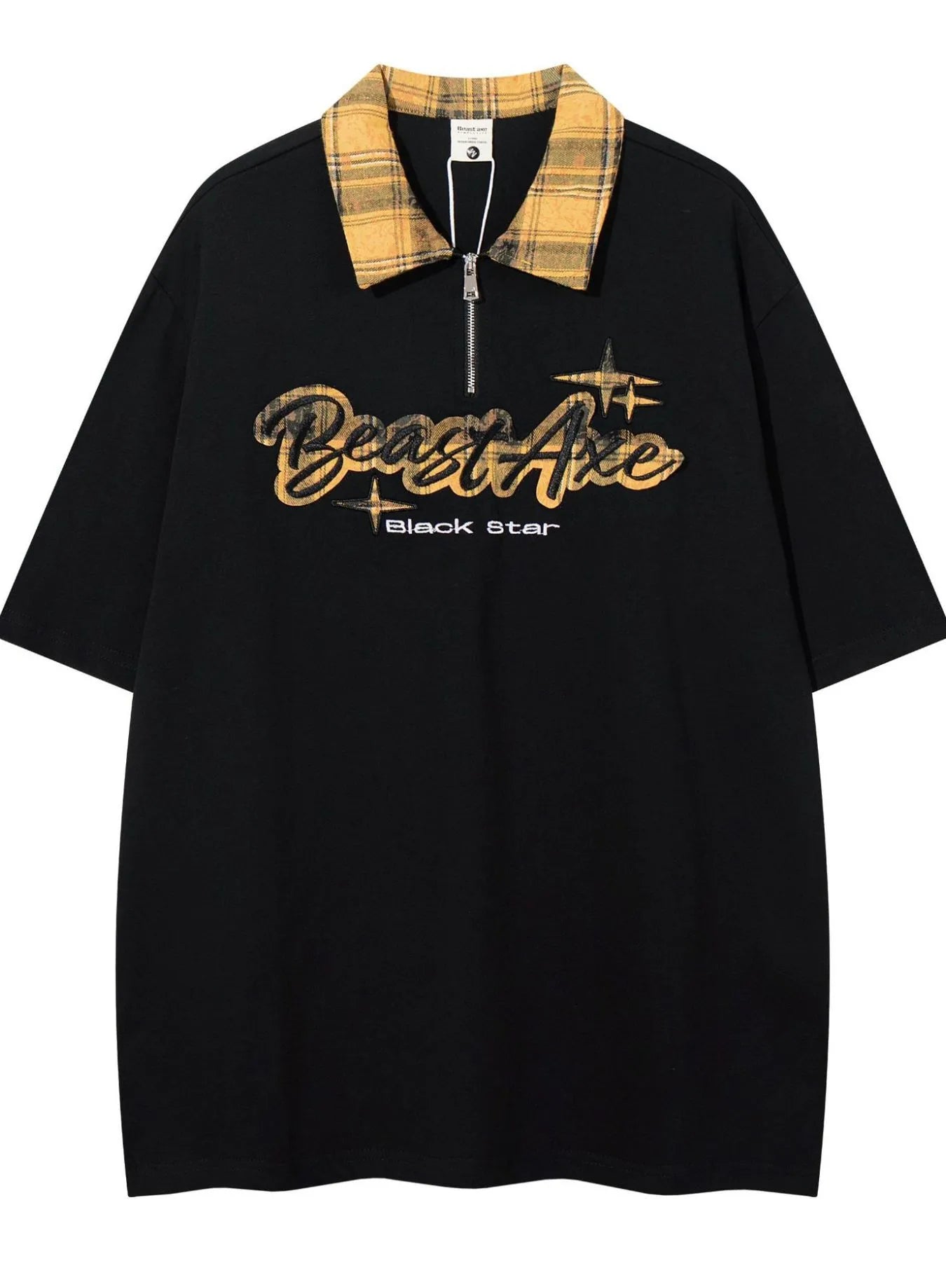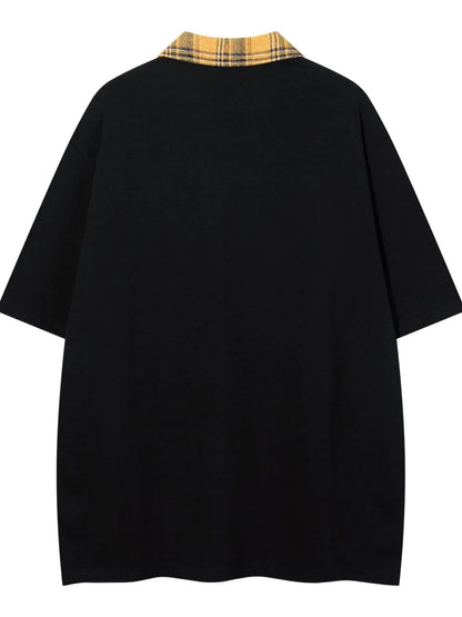 Curated for comfort, style, and confidence—meet the Men's Letter Plaid Collar Short Sleeve Polo that flatters every curve.