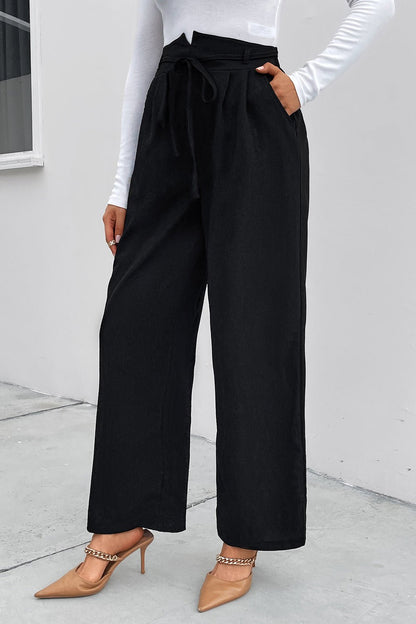 Curated for comfort, style, and confidence—meet the Perfee High Waist Ruched Tie Front Wide Leg Pants that flatters every curve.