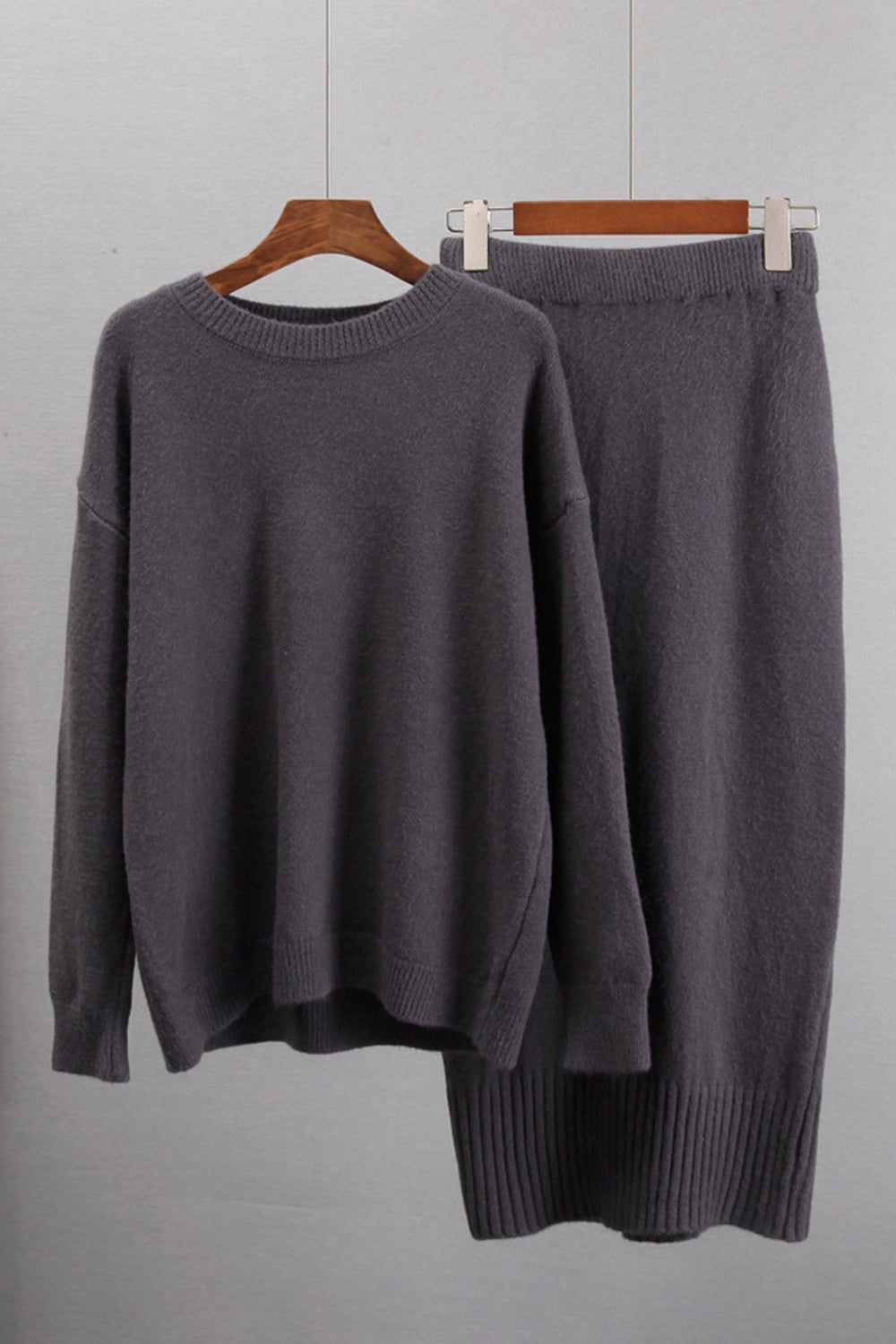 Curated for comfort, style, and confidence—meet the Round Neck Dropped Shoulder Top and Skirt Sweater Set that flatters every curve.