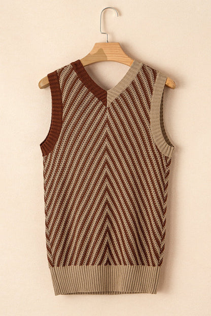Curated for comfort, style, and confidence—meet the Striped Contrast V-Neck Sweater Vest that flatters every curve.
