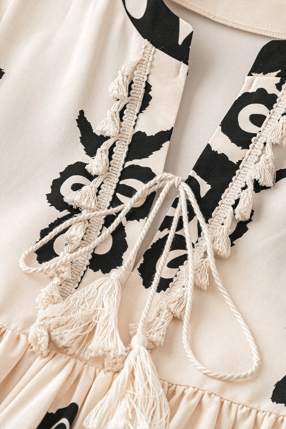 Tassel Printed Three-Quarter Sleeve Mini Dress