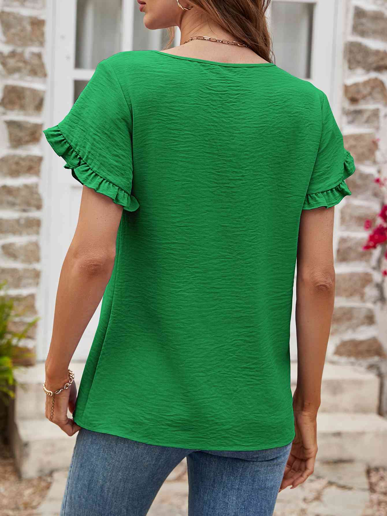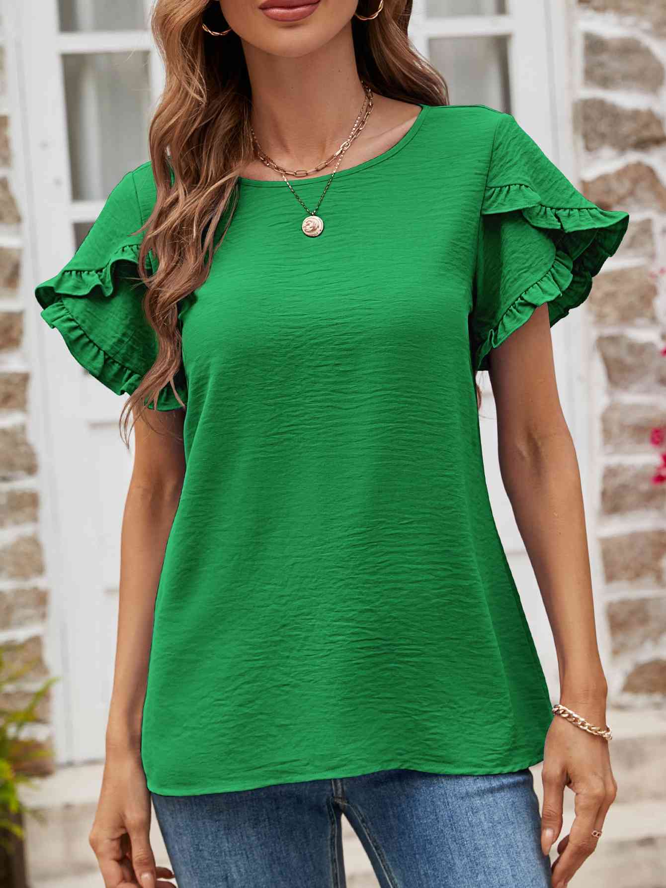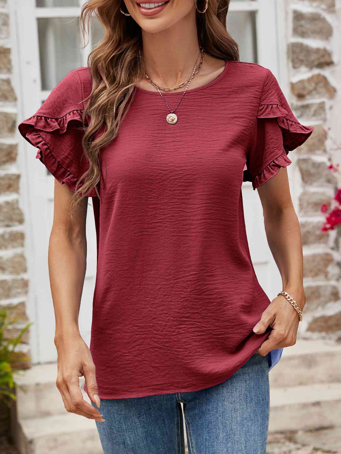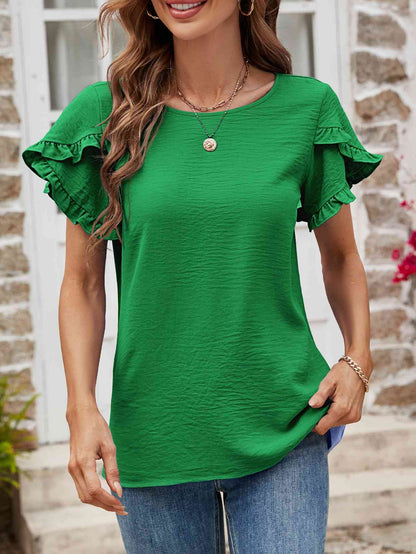 Textured Petal Sleeve Round Neck Tee