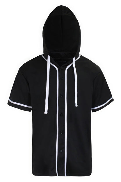 Level up your sportswear with our Black Hooded Baseball Jersey, a game-changer for every athlete and style-savvy individual. Made from a premium 60% cotton and 40% polyester blend, this jersey combines comfort, durability, and performance, making it your go-to for summer fashion.